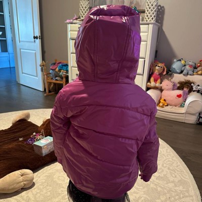 Toddler Girls' Shiny Heavyweight Hooded Puffer Jacket - Cat & Jack™ Purple 12M