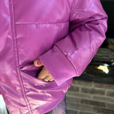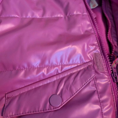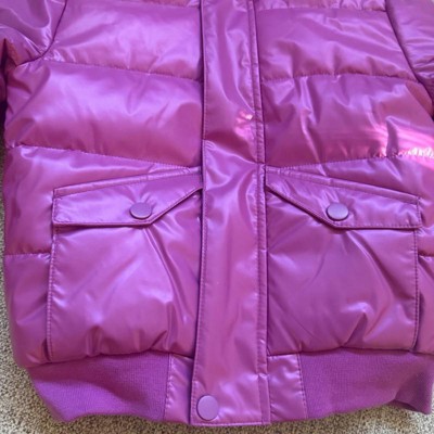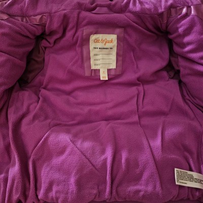 [This review was collected as part of a promotion.] The Cat and Jack purple shiny heavyweight purple puffer jacket is a very warm jacket for my daughter but she didn’t love it as much as I did. The pocket placements on the front of the jacket are hard for her to access and she is obsessed with pockets. I ordered her the 4t (she’s 38 pounds) and the jacket did fit her well. We both loved the color as she’s a girly girl and loves her pinks and purples. I’m going to return it because of the pockets, but it’s really cute.