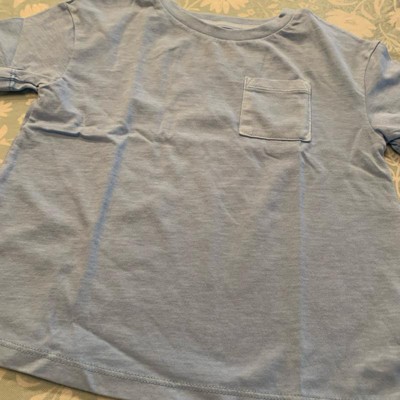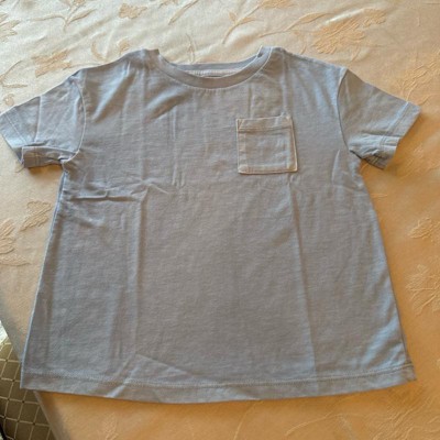 Refresh your little one's everyday wear with this Short-Sleeve Favorite T-Shirt from Cat & Jack™. This pullover T-shirt is crafted from midweight cotton-recycled polyester blend jersey fabric for all-day comfort. Featuring a crew neckline, chest patch pocket and short sleeves, the solid-color tee is tailored in a regular fit with below-waist length for comfortable wear.
