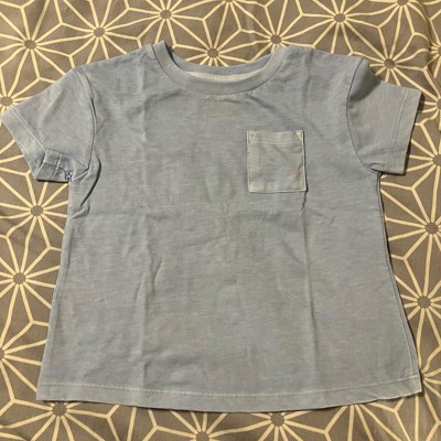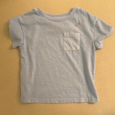 Refresh your little one's everyday wear with this Short-Sleeve Favorite T-Shirt from Cat & Jack™. This pullover T-shirt is crafted from midweight cotton-recycled polyester blend jersey fabric for all-day comfort. Featuring a crew neckline, chest patch pocket and short sleeves, the solid-color tee is tailored in a regular fit with below-waist length for comfortable wear.