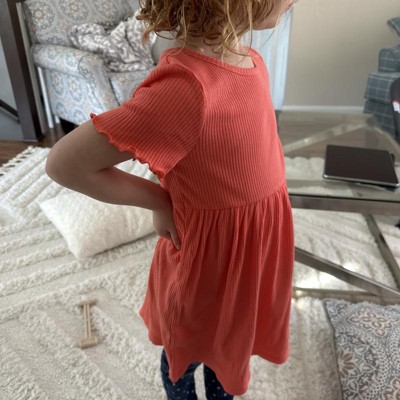 [This review was collected as part of a promotion.] This Short Sleeve Ribbed Dress from Cat and Jack is super cute and comfortable. It comes in a couple different colors. It's very soft and stylish. My almost 6 year old is wearing a 5T and it fits true to size. It's a good length where she can wear it without pants underneath in the summer or she could wear it with pants in the colder months. This dress is also a great price I received an incentive to write this review.