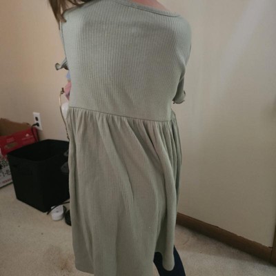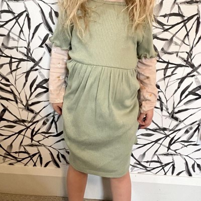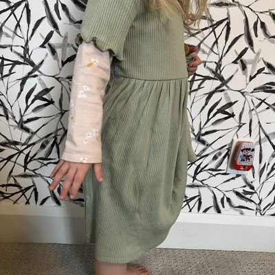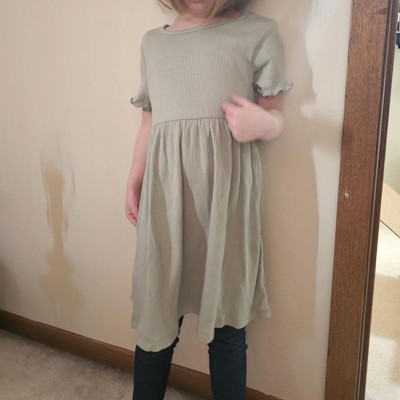 Toddler Girls' Short Sleeve Solid Ribbed Dress - Cat & Jack™ Olive Green 18M: Cotton Blend, A-Line, Crew Neck, Machine Washable