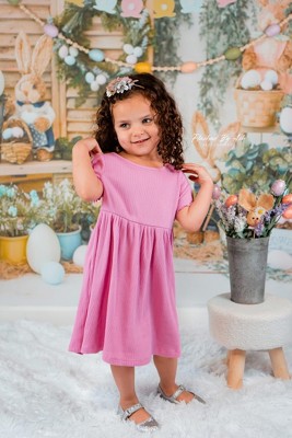 [This review was collected as part of a promotion.] This is a really pretty pink dress. It retails at an affordable price too. My 3ft 11 tall 6 year old is wearing the size 5T so there is room to grow. The rib fabric looks great and the shade of pink is really nice. Is a wardrobe staple and it’s very comfortable to wear. It is available in 3 really trendy colors so it would be fun to have them all. Easy to accessorize and wear it your way. I received an incentive to write this review.