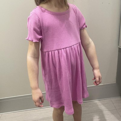 Toddler Girls' Short Sleeve Solid Ribbed Dress - Cat & Jack™ Purple 18M: Cotton Blend, Midweight, Crew Neck, A-Line, Machine Washable