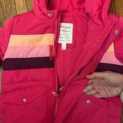[This review was collected as part of a promotion.] I was looking for a winter jacket for my daughter and this one from Cat and Jack did not disappoint. It’s thick and warm but doesn’t seem very bulky if that makes sense. The pink color is vibrant and the striped detail gives it a little character. It’s sized a little big. My daughter usually wears 18 months but this is pretty large on her. She’ll be able to grow into it!