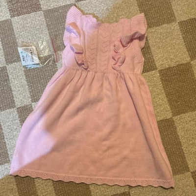 This very cute Cat & Jack dress was a hit as a gift for my brand new great-neice! Very well made, heavy knit but still "frilly" and in a pretty light shade of pink, my neice--who is a Barbie pink fan-- absolutely loves it!