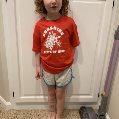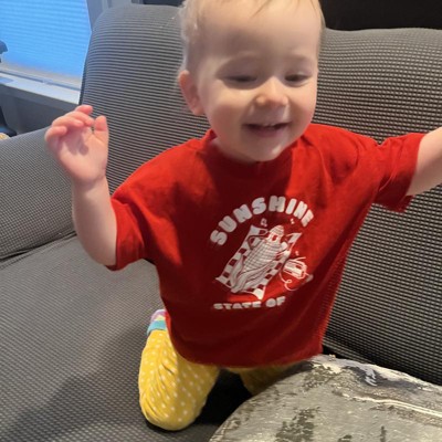 [This review was collected as part of a promotion.] This red toddler sunshine state of mind tshirt is very cute and summery! It could be for either boys or girls which I love for hand me downs. It is a nice quality t shirt for the price and is a great value! I ordered a size 3T for my 3 year old daughter who usually wears that size and it fit her well, with room to grow or incase it shrinks a little. She also loves that it does not have a tag so no itching! I received an incentive to write this review.