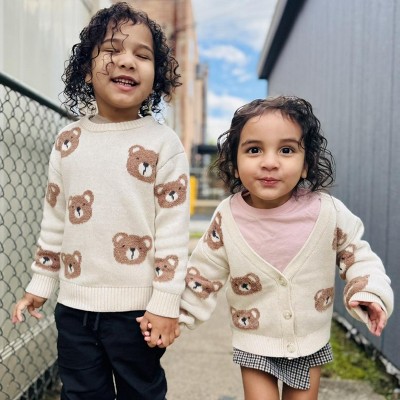Keep your toddler warm in playful style with this Bears Cardigan from Cat & Jack™. This jacquard-knit cardigan is adorned with an adorable print of brown bear faces on an oatmeal-color backdrop, and it has a V-neckline, long sleeves, and ribbed edges. Made from a midweight blend of cotton and recycled polyester, it’s tailored in a below-waist length for comfortable wear, and a full-length button placket down the front completes the look with easy on and off.