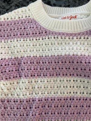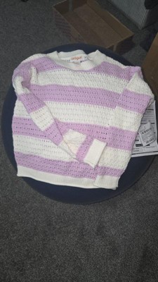 This Toddler Girls' Crew Neck Striped Pullover - Cat & Jack™ Light Purple/Cream 3T is just adorable! I love how the arms and waist band curls up. It is so well made that it looks like it was crocheted by hand!