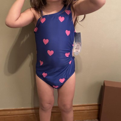 e absolutely love this swimsuit! The bright blue color with cute pink hearts is even more vibrant in person, and the one-shoulder design gives it a fun, stylish twist while still staying secure during play. The fit is true to size, and the fabric feels soft yet durable — perfect for long days at the pool or beach. My daughter felt so confident and comfy wearing it. Definitely a great buy for summer!