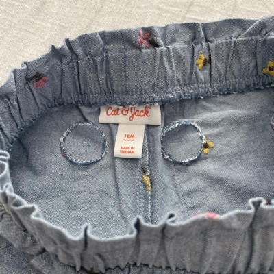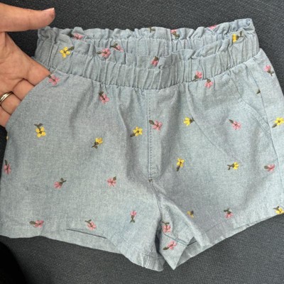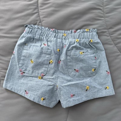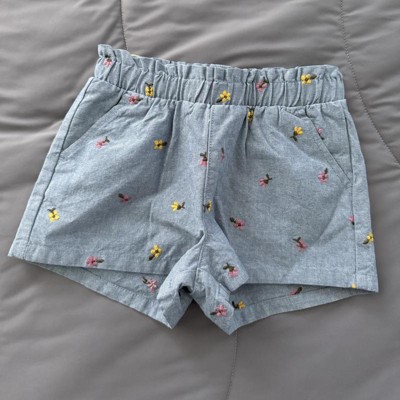 Let your little one enjoy their fun days wearing these Floral Embroidered Woven Shorts from Cat & Jack™. Crafted from midweight cotton, these chambray shorts feature vibrant embroidered floral motifs for an elegant touch. The full elastic waistband lends a secure, snug fit, with quick on and off, and side pockets and back patch pockets add extra style to their outfit, while also providing a handy spot for tiny treasures.