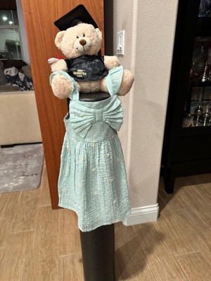 This dress is so cute. I like the light green color for spring and summer. The little embroidered daises are so precious, as is the large bow detail on the front. This could be worn alone, but I think it would be cute with a short or long sleeve shirt/onesie underneath.