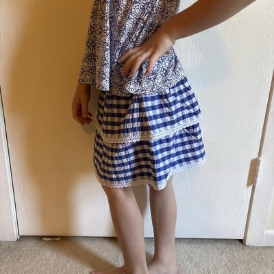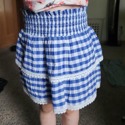They will be ready to take on their day in this Gingham Skirt from Cat & Jack™. Made from soft, stretchy fabric for cozy comfort, this mid-rise skirt features a gingham pattern for a sweet touch. This regular-fit skirt is designed with a smocked elastic waistband for a stay-put fit and boasts a two-tier design with lace trims. They can mix and match it with their favorite tees or tops for fun, adorable looks.