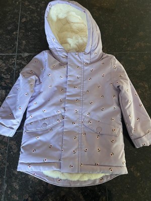 Toddler Girls' Hooded Floral Printed Parka Jacket - Cat & Jack™ Lavender 12M