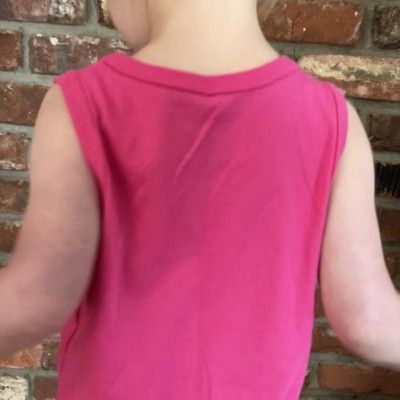 My 4.5yr old daughter loves this tank top! Fit is great and pink is bright.