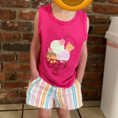 [This review was collected as part of a promotion.] Cute little tank top that’s affordable and has a design that a will be a hit with a toddler, my daughter and I love to go to the ice cream shop every week so she loves her new “ice cream” shirt, she wears 4T and this shirt is 4T and it fits great so it’s true to size, very affordable bright color and pattern for the color loving moms out there, these tanks make for good summer staples I received an incentive to write this review.