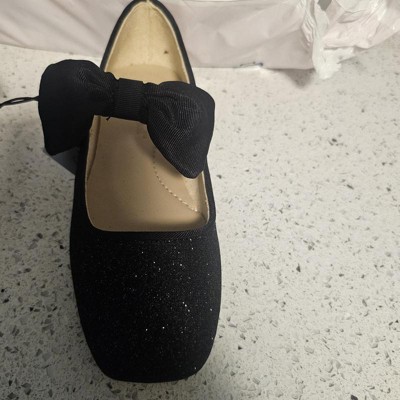 Add a cute staple to your little ballerina's shoe closet with these Juni Bow Ballet Flats from Cat & Jack™. These ballet flats feature an allover sparkly design and a decorative bow on the strap for a trendy look. Designed with a closed square toe, these medium-width ballet flats have an adjustable hook-and-loop strap for a snug, customizable fit. They can wear them with a tulle dress for an adorable look on both casual and dressy occasions.