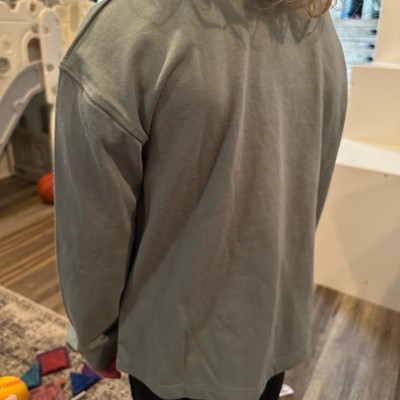 [This review was collected as part of a promotion.] This relaxed fit long sleeve t-shirt is a nice change from all the pinks and blues you usually see in toddler girl clothing. The sparkle of the design adds a girly touch! Will be perfect for all of winter and not just the holiday season. The shirt itself is soft and thicker than your average basic tee. The drop sleeve is really cute, too! My daughter is normally 4T but I like the oversized look of the 5T she is pictured in!