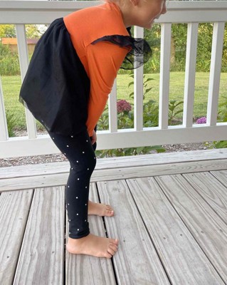 This is a fun Halloween themed outfit. Sometimes my kids don’t like wearing costumes so this is a nice alternative to get dressed up without necessarily needing a costume. I like the glittery cat on the front and the mesh skirt. The shirt and matching leggings are soft and comfortable to wear. The shirt is a little wide but it works well to layer on top of another shirt. Overall a cute outfit.