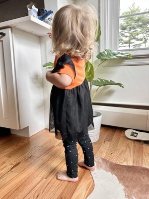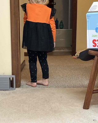 This little Halloween toddler set is very cute. Love that it comes with a fun top and comfy leggings. We did size up for our toddler to 3T as things tend to run small on her and it fits well especially after washing and drying. It held up in the wash and looks cute on! Perfect for trick or treating or wearing around Halloween.