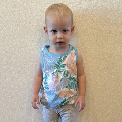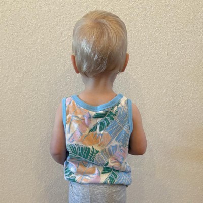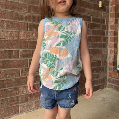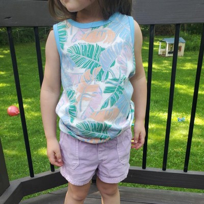 Expand your tiny tot’s everyday options with this Palm Printed Tank Top from Cat & Jack™. This sleeveless tank top is crafted from a soft cotton-recycled polyester blend jersey fabric in a relaxed fit for comfortable, everyday wear. Boasting an allover palm print for a fun, tropical look, this tank top pairs well with a variety of skirts, jeans and shorts.