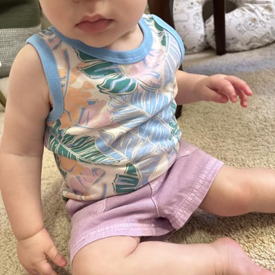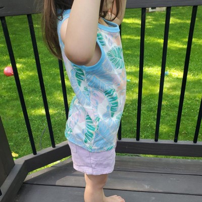 [This review was collected as part of a promotion.] I recently purchased this palm leaves printed tank top for my twelve month old in the size 18 months. I really like the print of the top. The colors and pattern are super cute. However, the shirt itself is quite long on my daughter and she is not short and does not have a short torso. But, since it is long, it should fit her all summer. Overall, this is a decent tank top for the price. I received an incentive to write this review.