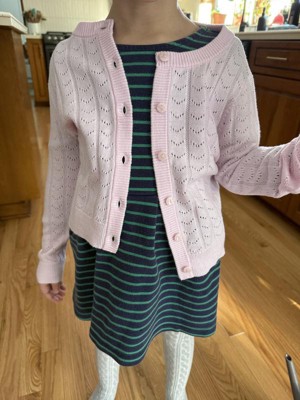 Pretty Pink Pointelle Girls' Crew Neck Cardigan