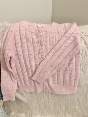 Toddler Girls' Pointelle Cardigan - Cat & Jack™ Light Pink 12M: Cotton Blend, Recycled Polyester, Relaxed Fit, Front Button Down