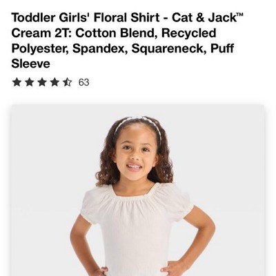 Give your little one’s wardrobe a sweet update with this Shirt from Cat & Jack™. Made from a midweight cotton-recycled polyester blend with spandex, this regular-fit top helps keep them comfy during any activity. A square neckline, short puff sleeves, raglan shoulders and a lettuce-trim hemline complete the design with classic touches.