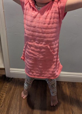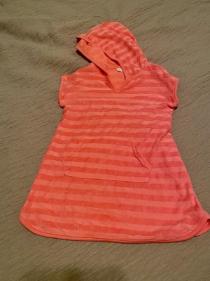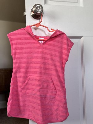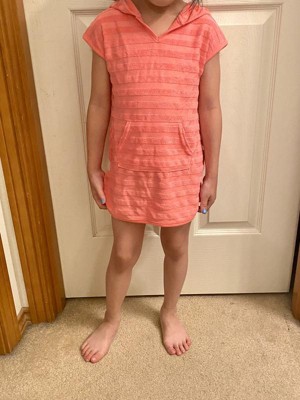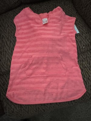 Your little one will look and feel their absolute best during sunny outings in this Terry Stripe Printed Swim Cover-Up Dress from Cat & Jack™. This striped cover-up dress is made from cotton-recycled polyester blend loop terry fabric for comfortable wear, and the attached hood offers added coverage. Plus, it's designed with a front kangaroo pocket that comes in handy for stashing pool toys and other small items.
