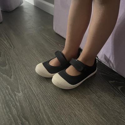 [This review was collected as part of a promotion.] I wanted a pair of simple black shoes that are soft and flexible but needs to be a wide toe box since my granddaughter has wide feet. I like the comfort and feel of these casual yet sturdy shoe. The non slip sole is perfect for wet weather, or playground wear. She is 4 and usually wears 10/11 so this fit is right on with room for growth. She likes the independence of putting on and off by herself. like that it washable with the fabric and Velcro buckles. I received an incentive to write this review.