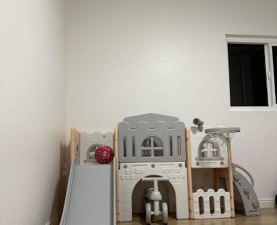 Toddler Playset, 8 in 1 Toddler Slide, Baby Playset for Indoor/Outdoor Playground with Climber, Crawling Tunnel, Basketball Hoop, Toy Storage