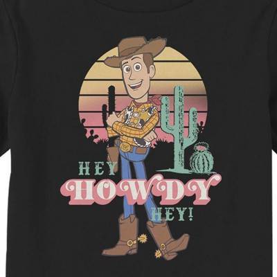 You've got a friend in this officially licensed Pixar Toy Story 4 Hey Woody Toddlers' Graphic T-Shirt! Don't worry if there's a snake in your boot because Woody is here to save the day with this graphic that features your favorite characters like Woody who is standing with his arms crossed and the text: "Hey Howdy Hey!" Take your look to infinity and beyond with these Toy Story-inspired styles for everyone!