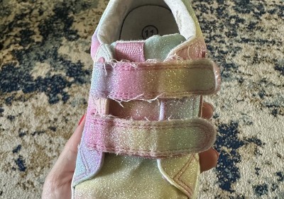 My daughter loves this sneakers with the colorful glitters. They’re cute & my toddler finds them easy to put on