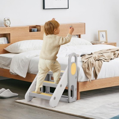 Multiuse Step Stool: Our Toddler Step Stool is a perfect multi-use tool for kids. It is suitable for bathroom sink, and can be used as a small ladder to help children get into and out of bed or sofas, a good helper in parent-child baking. With safety handles, it supports your child's independence as they grow.
