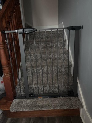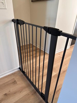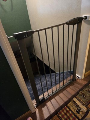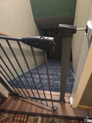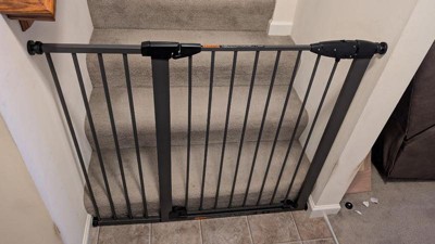 [This review was collected as part of a promotion.] Super easy to set up. I really love the metal finish. The gate is tall enough that you don't have to reach down to unlatch it. Have to lift the gate to get it to open, which makes it safer, but it is slightly hard to pull up. Otherwise love the gate!