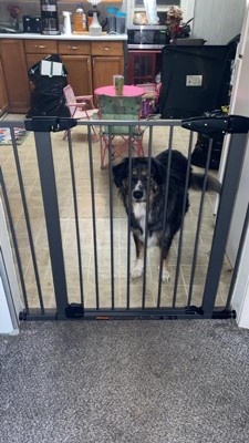 [This review was collected as part of a promotion.] This gate is super nice! I like how tall it is and how it opens in either direction. It came very well packaged. It’s not super loud when it shuts and it’s very durable.