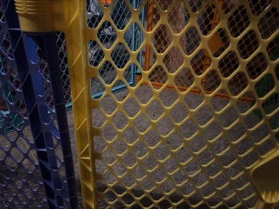This gate is extremely stiff, loud, and hard to bend. If you bend a panel too far in the wrong direction the plastic snaps