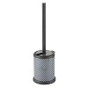 Store your toilet brush in plain sight with the attractive Bath Bliss Toilet Brush Set. This brush and decorative storage container is discreet and will make a lovely accent to most bathroom decors. The handle and canister for the bathroom toilet brush have a slick finish and are constructed from a hygienic and rust-resistant stainless steel. The set also has a durable, rounded, bristle brush that is designed to remain hidden when the product is not in use. This stainless steel toilet brush will keep both your bathroom and toilet looking their best. Treated to resist mildew, bacteria and rust. Comes with an opening and closing lid.