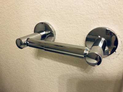 Love the sleek, modern look. Solid construction. Only downside is that the toilet roll holder doesn't slide as easily in and out but really no big deal. However, be aware that the INCORRECT MEASUREMENT IS PROVIDED in the manual! Mounting brackets should be spaced about 5.5" apart on center, NOT 6" apart. The toilet roll holder won't even reach both ends at 6" apart.