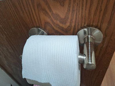 Q: How is the toilet paper holder mounted?