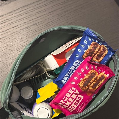 - Features a spacious compartment with zipper closure