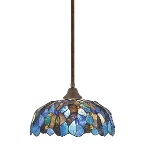 Collection: Any, Material: Steel, Finish Color: Bronze, Width: 14.75", Height: 10.5", Lamping Type: Incandescent, Number Of Bulbs: 1, Wattage: 150 Watts, Dimmable: No, Moisture Rating: Dry Rated Desc: Stem Pendant With Hang Straight Swivel Shown In Bronze Finish With 16" Blue Mosaic Art Glass, Material: Steel, Finish Color: Bronze, Width: 14.75", Height: 10.5", Lamping Type: Incandescent, Number Of Bulbs: 1, Wattage: 150 Watts, Dimmable: No, Moisture Rating: Dry Rated-Any - 1 Light Stem Pendant With Hang Straight Swivel-10.5 Inches Tall and 14.75 Inches Wide