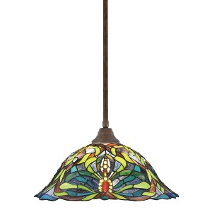 Collection: Any, Material: Steel, Finish Color: Bronze, Width: 16", Height: 10", Lamping Type: Incandescent, Number Of Bulbs: 1, Wattage: 150 Watts, Dimmable: No, Moisture Rating: Dry Rated Desc: Stem Pendant With Hang Straight Swivel Shown In Black Copper Finish With 16" Mardi Gras Glass, Material: Steel, Finish Color: Bronze, Width: 16", Height: 10", Lamping Type: Incandescent, Number Of Bulbs: 1, Wattage: 150 Watts, Dimmable: No, Moisture Rating: Dry Rated-Any - 1 Light Stem Pendant With Hang Straight Swivel-10 Inches Tall and 16 Inches Wide-Bronze Finish-Kaleidoscope Art Glass Color