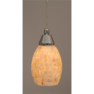 Collection: Any, Material: Steel, Finish Color: Chrome, Width: 5", Height: 9", Lamping Type: Incandescent, Number Of Bulbs: 1, Wattage: 100 Watts, Dimmable: No, Moisture Rating: Dry Rated Desc: Cord Mini Pendant Shown In Black Copper Finish With 5" Sea Haze Seashell Glass, Material: Steel, Finish Color: Chrome, Width: 5", Height: 9", Lamping Type: Incandescent, Number Of Bulbs: 1, Wattage: 100 Watts, Dimmable: No, Moisture Rating: Dry Rated-Any - 1 Light Mini Pendant-9 Inches Tall and 5 Inches Wide-Chrome Finish-Ivory Glaze Seashell Glass Color -Traditional Installation
