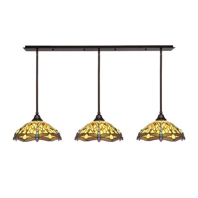 Toltec Lighting Any 1 - Light Pendant in Dark Granite with 16" Amber Dragonfly Art Glass Shade