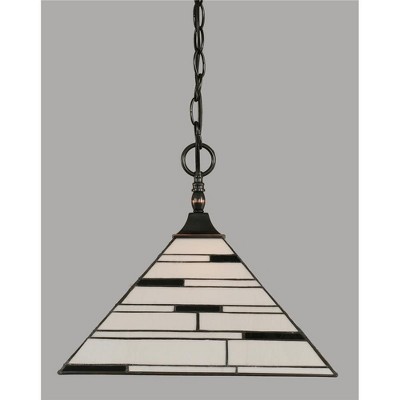 Collection: Any, Material: Steel, Finish Color: Matte Black, Width: 14", Height: 12", Chain Length: 84", Lamping Type: Incandescent, Number Of Bulbs: 1, Wattage: 150 Watts, Dimmable: No, Moisture Rating: Dry Rated Desc: Stem Hung Pendant With Square Fitter Shown In Black Copper Finish With 14" Pearl Ebony Art Glass, Material: Steel, Finish Color: Matte Black, Width: 14", Height: 12", Chain Length: 84", Lamping Type: Incandescent, Number Of Bulbs: 1, Wattage: 150 Watts, Dimmable: No, Moisture Rating: Dry Rated-Any - 1 Light Stem Hung Stem Hung Pendant-12 Inches Tall and 14 Inches Wide-Matte Black Finish-New Deco Art Glass Color