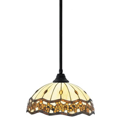 Collection: Any, Material: Steel, Finish Color: Matte Black, Width: 14", Height: 9.25", Chain Length: 84", Lamping Type: Incandescent, Number Of Bulbs: 1, Wattage: 150 Watts, Dimmable: No, Moisture Rating: Dry Rated Desc: Stem Hung Pendant With Square Fitter Shown In Brushed Nickel Finish With 14" Pearl Ebony Art Glass, Material: Steel, Finish Color: Matte Black, Width: 14", Height: 9.25", Chain Length: 84", Lamping Type: Incandescent, Number Of Bulbs: 1, Wattage: 150 Watts, Dimmable: No, Moisture Rating: Dry Rated-Any - 1 Light Stem Hung Stem Hung Pendant-9.25 Inches Tall and 14 Inches Wide-Matte Black Finish-Santa Cruz Art Glass Color