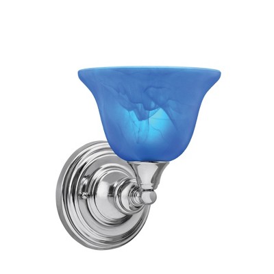Collection: Any, Material: Steel, Finish Color: Brushed Nickel, Width: 7.5", Height: 8.5", Length: 7", Backplate Width: 5.5", Lamping Type: Incandescent, Number Of Bulbs: 1, Wattage: 100 Watts, Dimmable: No, Moisture Rating: Damp Rated Desc: Wall Sconce Shown In Black Copper Finish With 7" Blue Italian Glass, Material: Steel, Finish Color: Brushed Nickel, Width: 7.5", Height: 8.5", Length: 7", Backplate Width: 5.5", Lamping Type: Incandescent, Number Of Bulbs: 1, Wattage: 100 Watts, Dimmable: No, Moisture Rating: Damp Rated-Any - 1 Light Wall Sconce-8.5 Inches Tall and 7.5 Inches Wide-Brushed Nickel Finish-Italian Marble Glass Color
