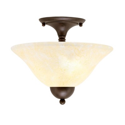 Collection: Any, Material: Steel, Finish Color: Bronze, Width: 12", Height: 11.25", Lamping Type: Incandescent, Number Of Bulbs: 2, Wattage: 60 Watts, Dimmable: No, Moisture Rating: Dry Rated Desc: Semi-Flush With 2 Bulbs Shown In Black Copper Finish With 12" Italian Bubble Glass, Material: Steel, Finish Color: Bronze, Width: 12", Height: 11.25", Lamping Type: Incandescent, Number Of Bulbs: 2, Wattage: 60 Watts, Dimmable: No, Moisture Rating: Dry Rated-Any - 2 Light Semi-Flush Mount-11.25 Inches Tall and 12 Inches Wide-Bronze Finish-Cayenne Linen Glass Color